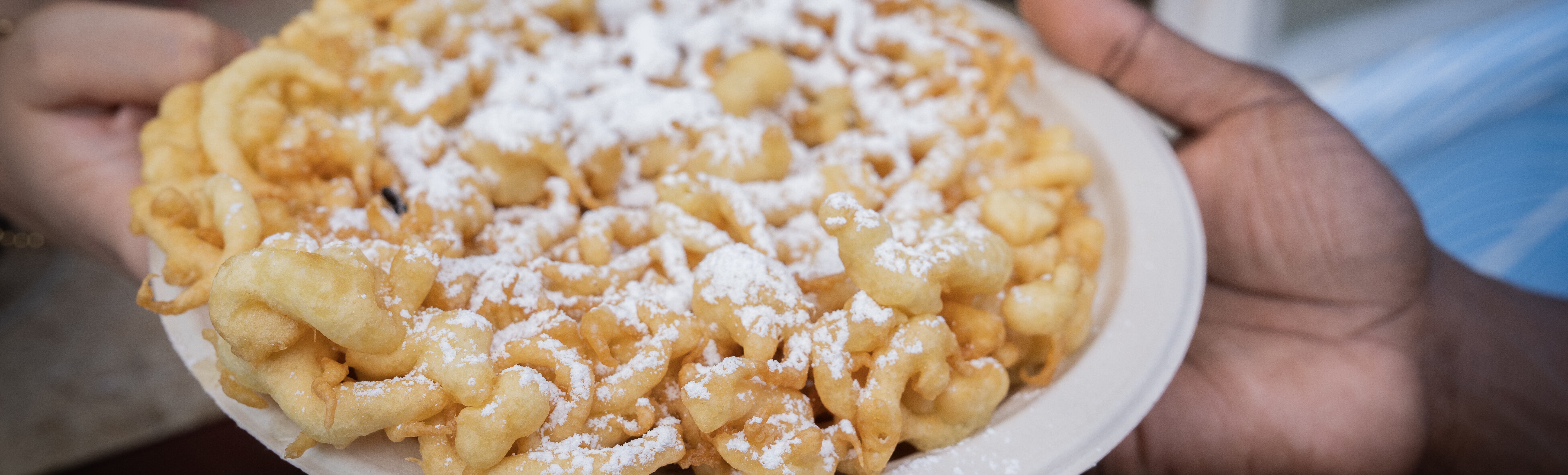 Enjoy your favorite fried funnel cake made fresh to order with powdered sugar, or add a variety of toppings to your dessert! Also offering fried Oreos and cold beverages. Souvenir cup refill station