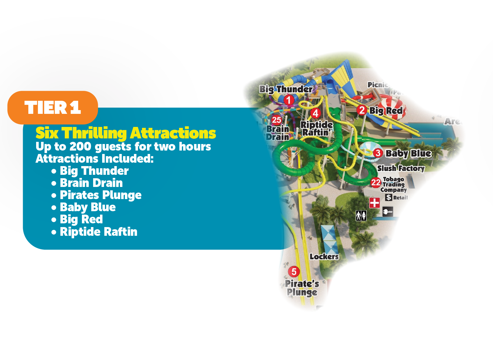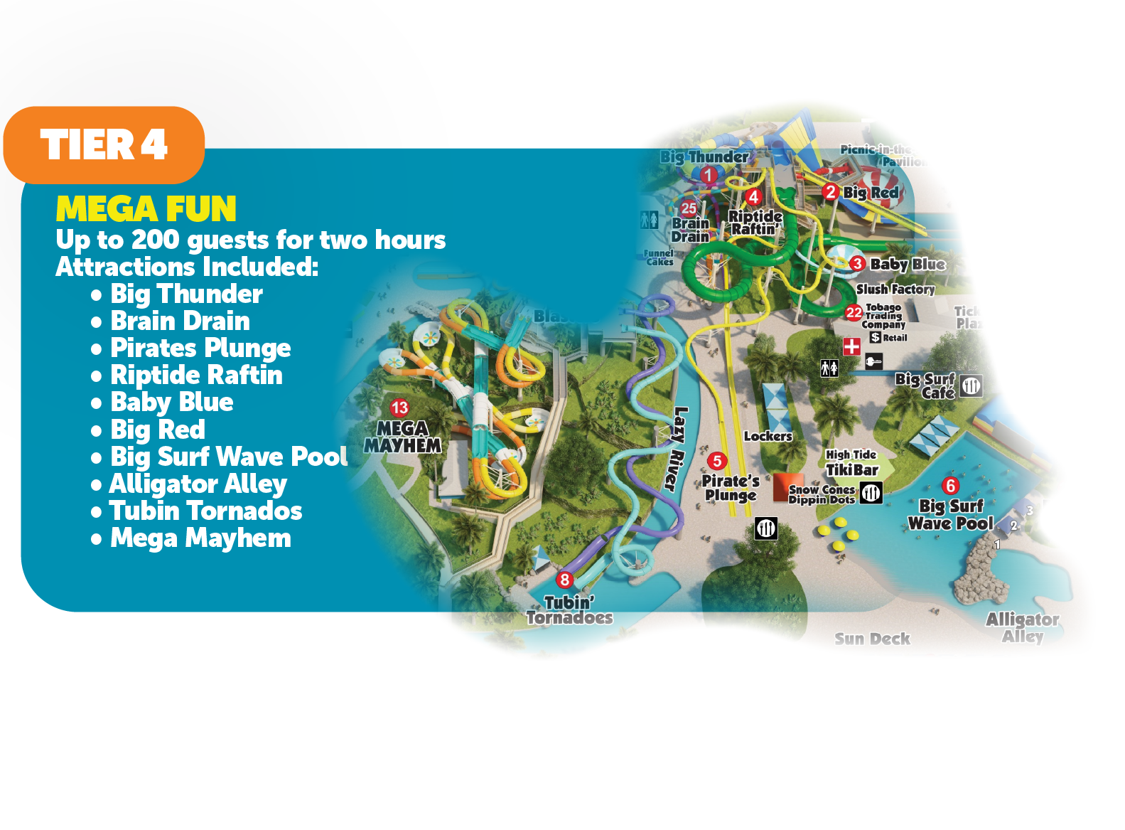 - ADD-ONS & MORE: When you book your group you get access to exclusive discounts on Souvenir Cups, Cabanas, Alcoholic Drinks, Parking, Season Passes and MORE!